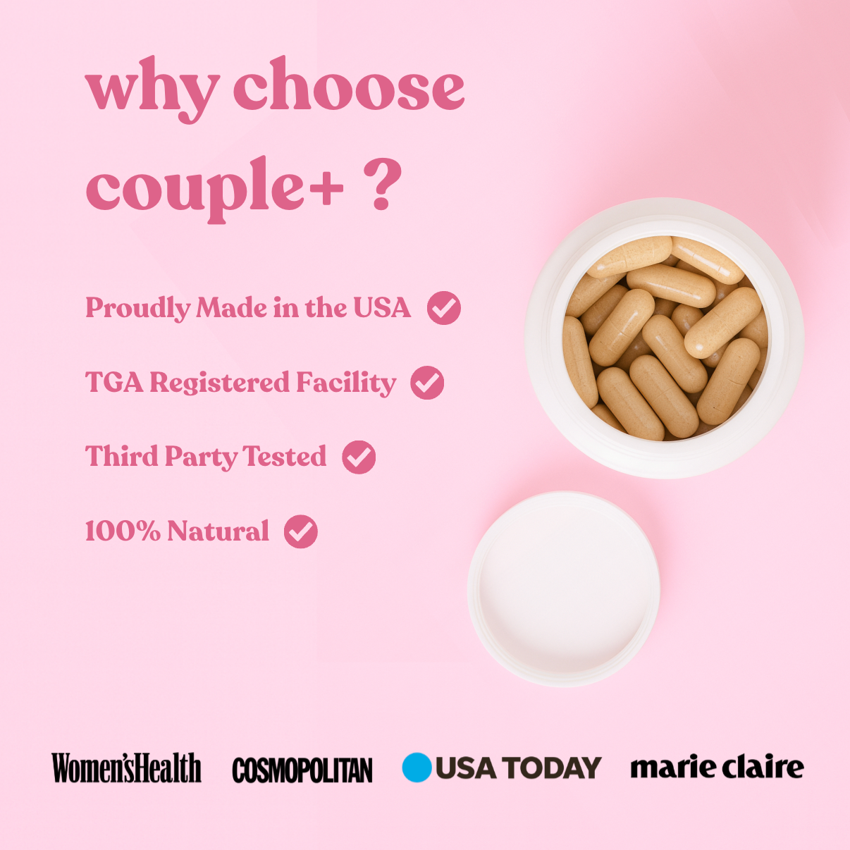 We want you to feel confident trying Couple+. If for any reason you’re not satisfied, you can return your order within 30 days of delivery for a full refund (minus shipping). To start a return, simply reach out to our support team and we’ll make the process quick and hassle-free.